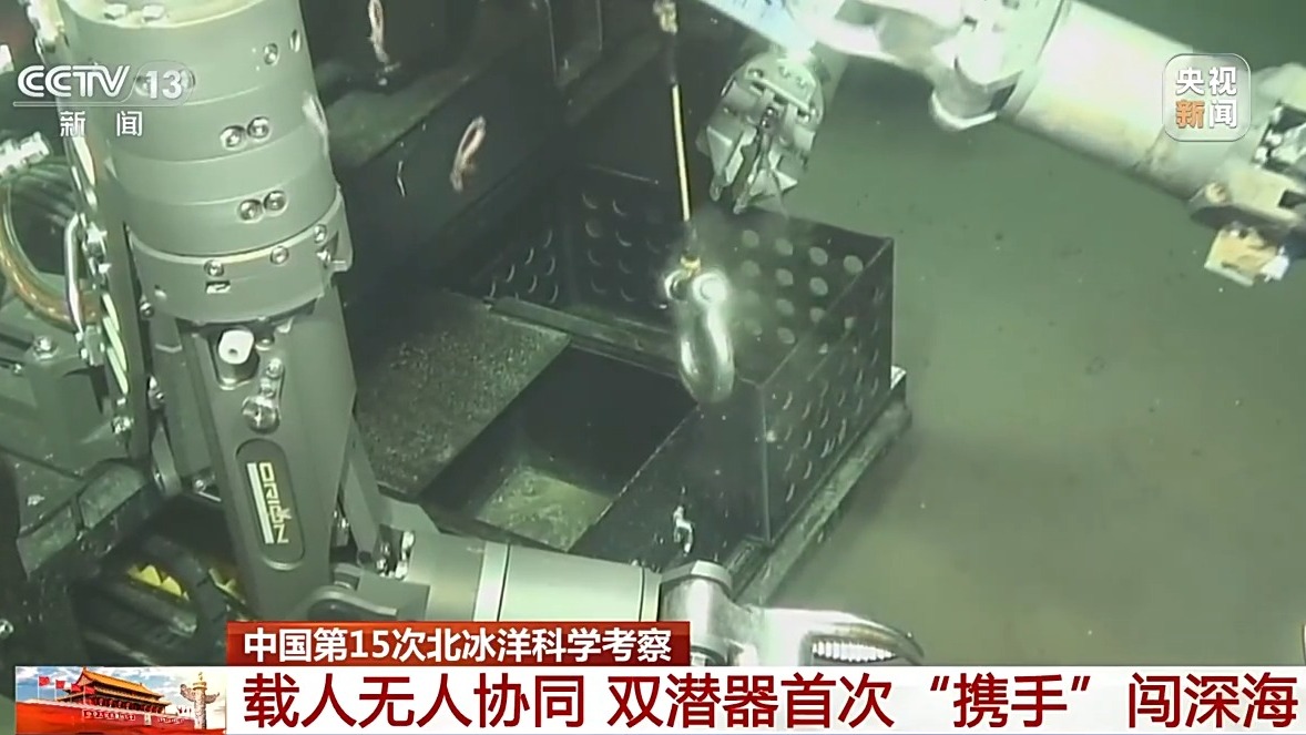 “蛟龙”号北极首潜主驾驶 傅文韬:因为“蛟龙”号作为载人潜水器,在水下从来都是单点作业,我们这次就拓展了它的作业能力。我们尝试了“蛟龙”号和无人遥控潜水器共同作业,这就要解决包括通信、定位等多方面的问题,然后再考虑下一步联合作业的问题。