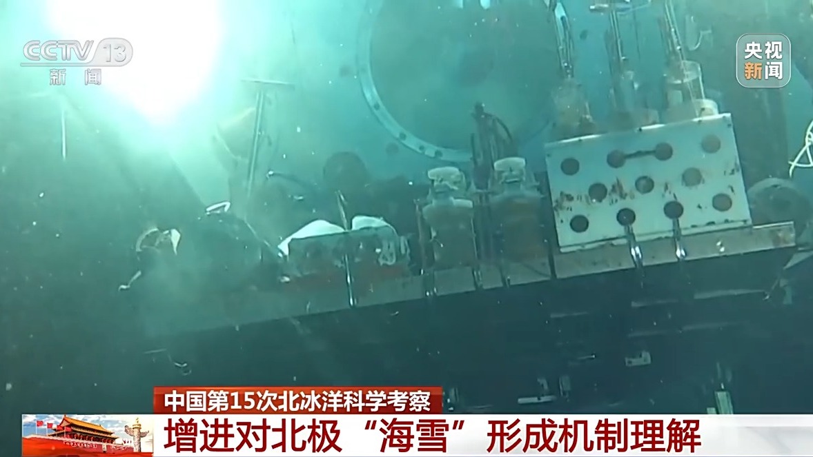 在海洋深处,有一种特有的类似雪花飞舞的现象被称为“海雪”,实际是由海洋悬浮颗粒碰撞粘连形成的大型絮状悬浮物,科学家通过深海潜水器才能肉眼观察到这个现象。而本次北冰洋考察也增进了对北极“海雪”形成机制的理解,为研究北极冰边缘区生态系统对海冰消退的响应奠定了基础。